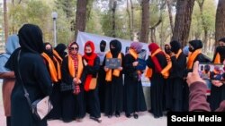 یوې محصلې چې د نوم د ښودلو یې ډډه وکړه امریکا غږ ته د یکشنبې په ورځ وویل، چې د طالبانو د حکومت د امربالمعروف ونهی المنکر د ښځینه محصلینو غوښتي و، چې پوهنتون ته د ورتګ پر مهال باید برقعه پر سر ولري.