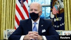 ښاغلي بایډن په یو ځانګړي فرمان کې په ټولو فدرالي ادارو کې د ماسک تړل جبري کړل. جمهور رئیس بایډن د امریکا له ټولو اوسیدونکو غوښتي چې د هغه د حکومت په لومړیو سل ورځو کې ټول له ماسک نه استفاده وکړي او ژمنه یې کړې چې ۱۰۰میلیون امریکایان د جمهوري ریاست په لومړیو سل ورځو کې د کروناویروس ضد واکسین شي.