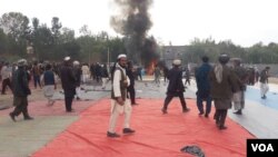 د تخار ولایت د پولیسو ویاند عبدالخلیل اسیر امریکاغږ ته وویل چې چاودیدونکي مواد په یو موټرسایکل کې ځای پر ځای شوي وو چې د غونډې له شروع کیدو وروسته یې انفجار کړی.
