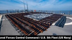 وروسته له هغې چې د متحده ایالاتو سمندري ځواکونو د چهارشنبې په ورځ ډسمبر ۲۲ (مرغومي اوله) اعلام وکړ چې د عرب سمندر په شمال کې یې د کب نیونې په یوې کښتۍ کې چې د هیڅ هیواد بیرغ پرې نه و ځوړند، د شاوخوا ۱۴۰۰ کلاشینکوفونو او ۲۲۶زره مرمیو یو غیرقانوني بار ضبط کړی دی، د امریکا د بهرنیو چارو وزارت د یوې اعلامیې په خپرولو سره وویل چې دغې کښتۍ د یمن حوثي یاغیانو ته غیرقانوني وسلې لیږدولې.