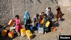 یو شمیر ماشومان د کابل په ځینو برخو کې د اوبو د ترلاسه کیدو لپاره ډیر انتظار باسي.