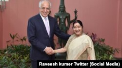 د هند د بهرنیو چارو وزیري سوشما سواراج په هند کې د افغان سولې په اړه د امریکا د بهرنیو چارو وزارت له ځانګړي استازي زلمي خلیلزاد سره لیدلي دي.