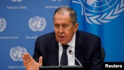 ښاغلي لاوروف شنبه سپټمبر ۲۳ (تلې اول) د ملګرو ملتونو په عمومي مرکز کې په یو خبري کنفرانس کې وویل، " تاسو چې ورته هر څه وایاست، خو هغوي (لویدیځ هیوادونه) زمونږ سره جګړه کوي. هغوي زمونږ سره مخامخ جګړه کوي".