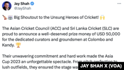 د اسیا د کرکټ شورا مشر جای شاه، چې د هند کرکټ بورډ مشر هم دی، په خپل اکس [ټویټر] کې د دغو کارکوونکو د ستایلو تر څنګ لیکلي دي چې د اسیا کرکټ شورا او د سريلانکا کرکټ بورډ «ویاړي چې د میدان ژمنو پالونکو او کارکوونکو ته د ۵۰زره ډالرو جایزه اعلانوي».