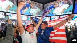 ددغې سیالۍ د نندارې دپاره د نیویارک ښار ټایمز څلورلارې ته څېرمه د امریکا د ټیم یو شمیر مینه وال راغونډ شوي وو.