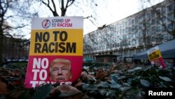 سلګونو مظاهره چیانو د واشنګټن ډي سي په ښار کې د متحده ایالاتو د نوي جمهور رئیس ډونالډ ټرمپ په خلاف پداسې حال کې مظاهرې وکړلې چې د هغه د لوړې مراسم لا روان و.